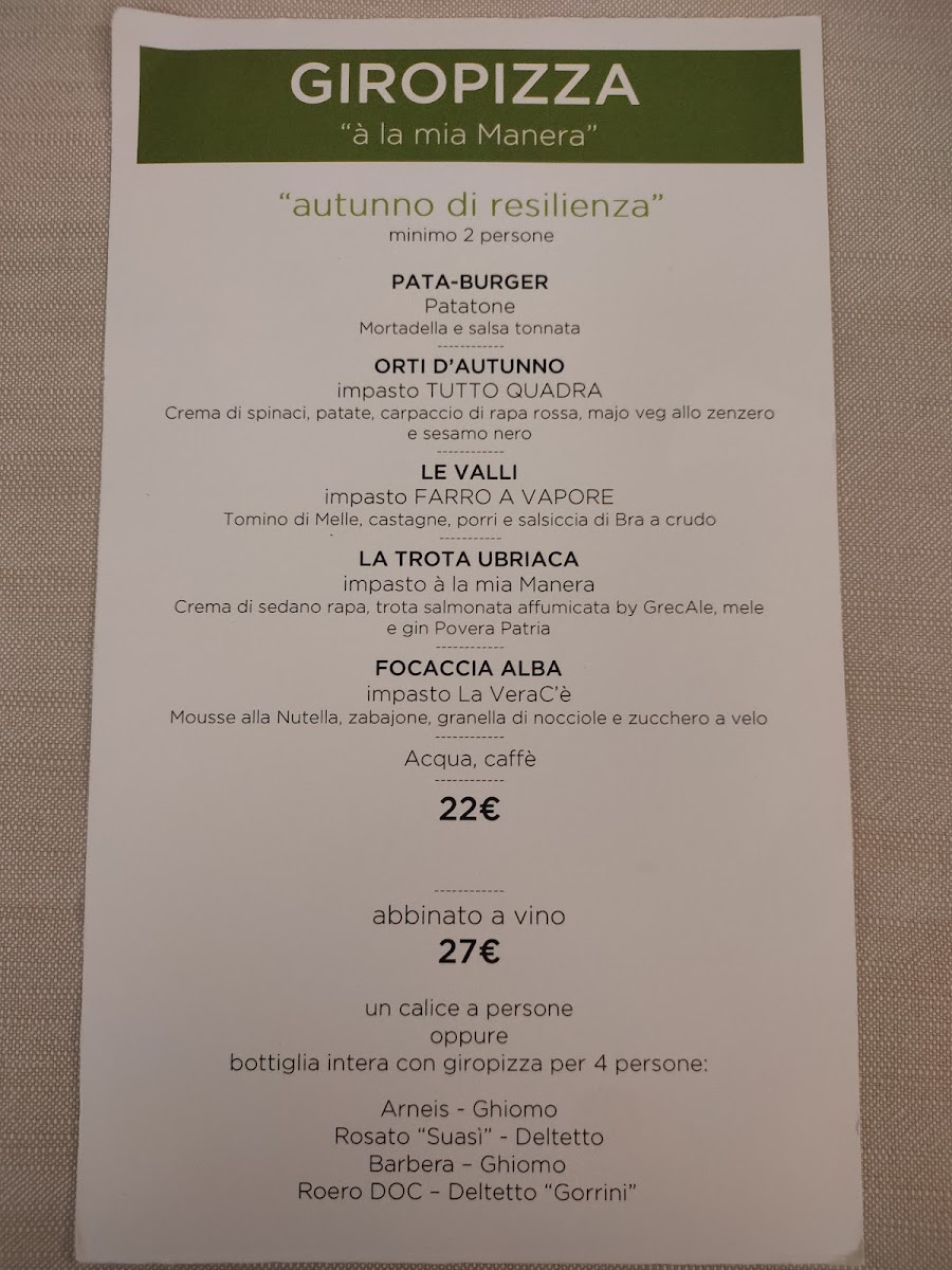 Welcome to Nostra Manera - trattoria della pizza, a charming pizza haven located at Via Torino, 27, in the picturesque town of Corneliano d'Alba, Italy. This restaurant offers an enticing menu that celebrates the art of pizza making with a focus on quality ingredients and diverse options. Customers rave about the crisp and flavorful pizza bases, with choices ranging from the traditional to unique alternatives like the farro base. The selection includes delicious vegetarian offerings, appealing to both herbivores and carnivores alike.